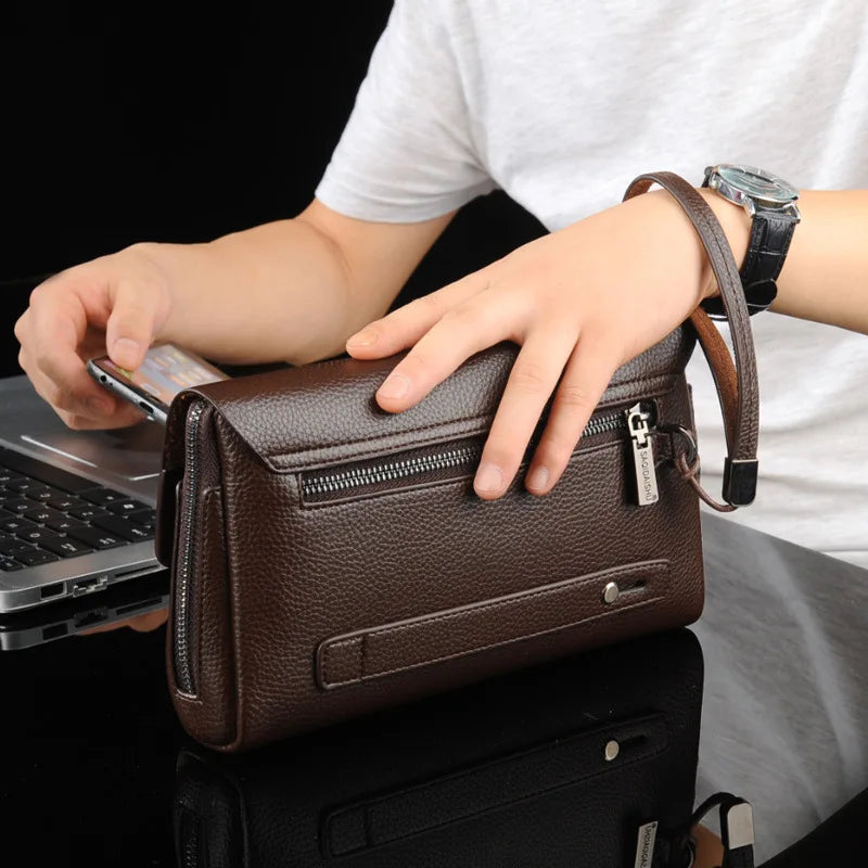 Stay secure with this men's clutch bag featuring anti-theft protection and a zipper closure. Perfect for business use or casual outings.