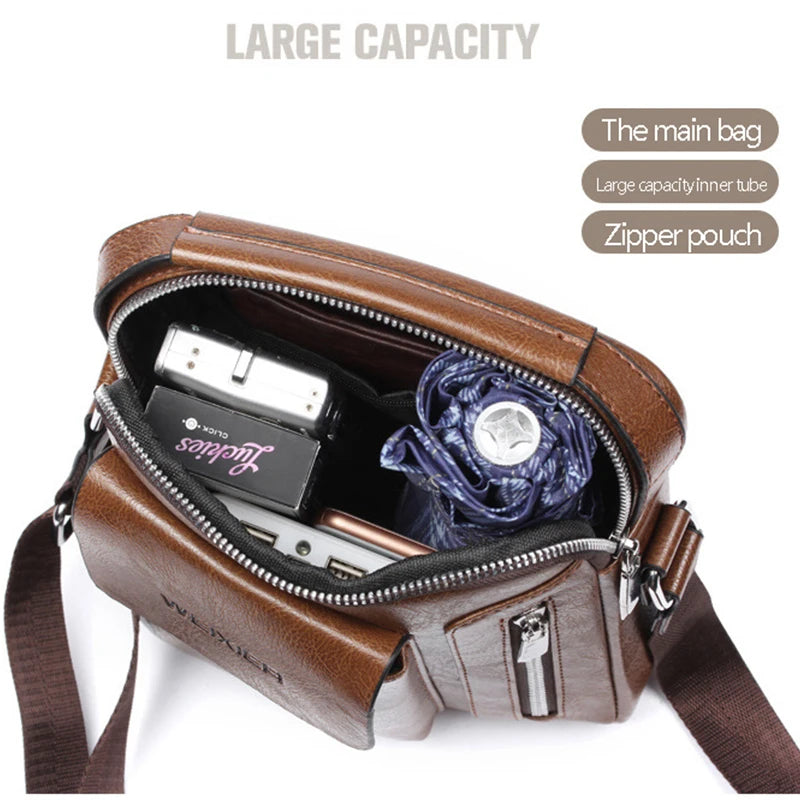This PU leather crossbody bag is designed for men looking for a stylish and secure travel companion. It's perfect for short trips and business use, featuring anti-theft protection and a waterproof design.