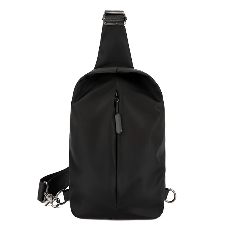 This men's belt bag is perfect for travel and daily use. It features a charging port for convenience and multiple pockets for storage. The bag can be worn as a chest bag or messenger bag, offering versatile carrying options.