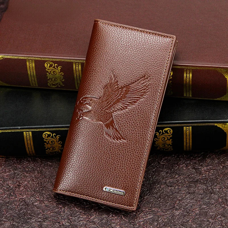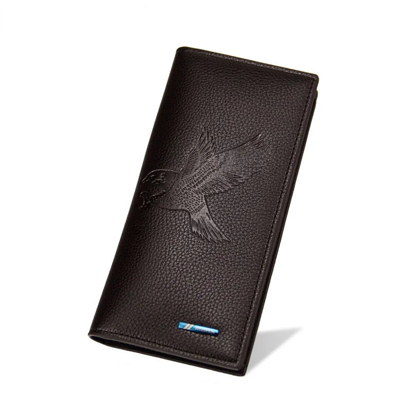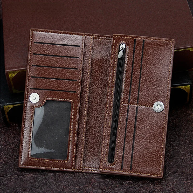 Stay organized and stylish with this men's long wallet featuring a magnetic clasp. It has a large capacity for cards and cash.