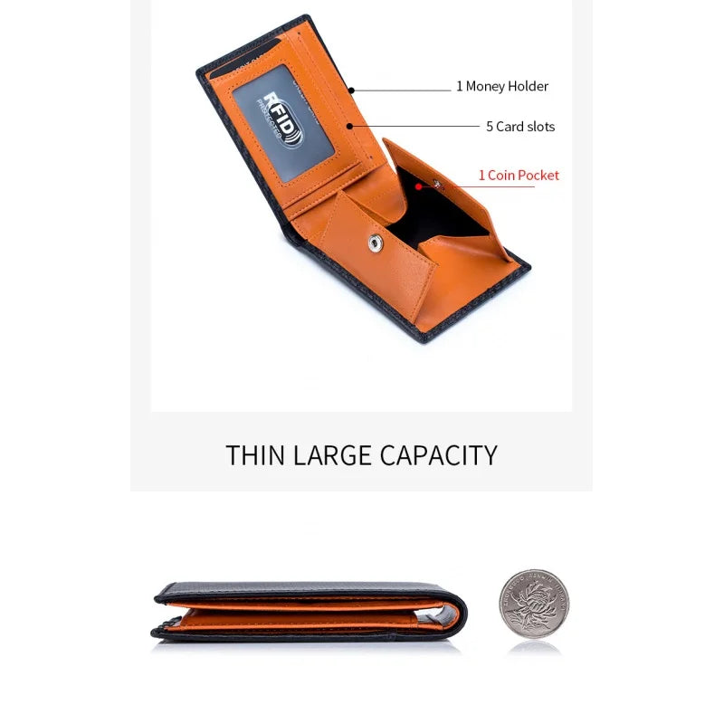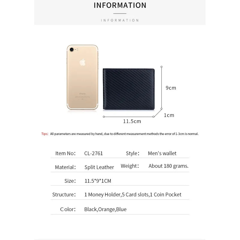 Men's Carbon Fiber RFID Wallet Slim Short Leather