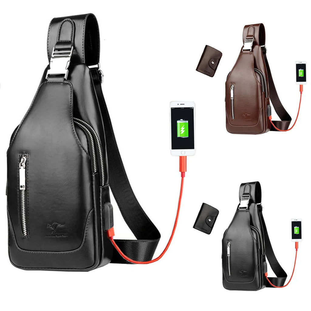 Men's Crossbody Phone Bag Chest Sling Bag with Headphone Jack