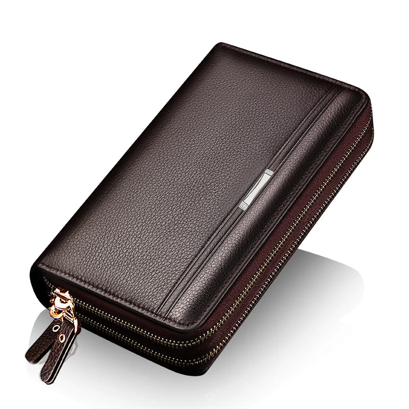 Stay organized with this men's clutch bag made from high-quality PU leather. The double zipper design makes it easy to access your essentials while on the go.