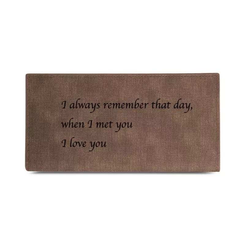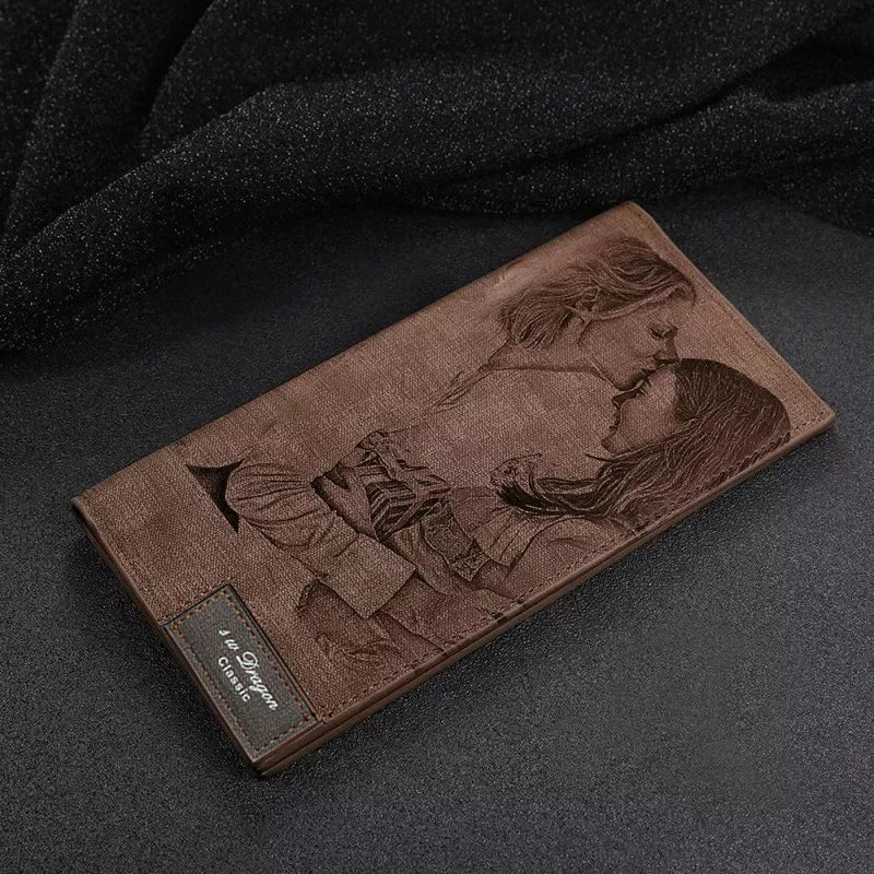 Men's Inscription Photo Engraved Leather Wallet Slim Bifold Style