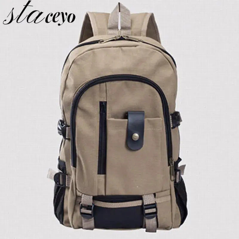 Men's Large Canvas Backpack Solid Rucksack for School Travel Sports