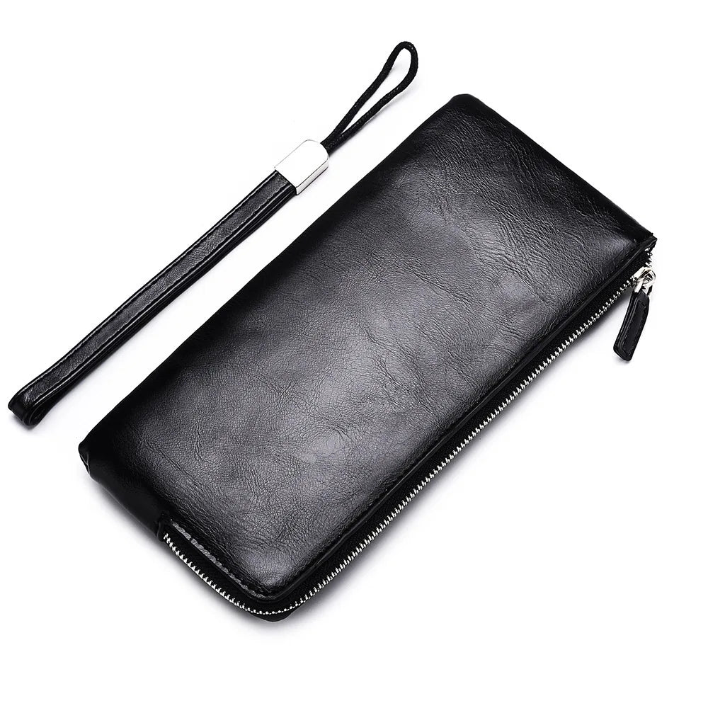 This men's long handbag is perfect for business use, featuring a large capacity design with a wallet clip and zipper closure. The bag also includes compartments for change and mobile phone storage.