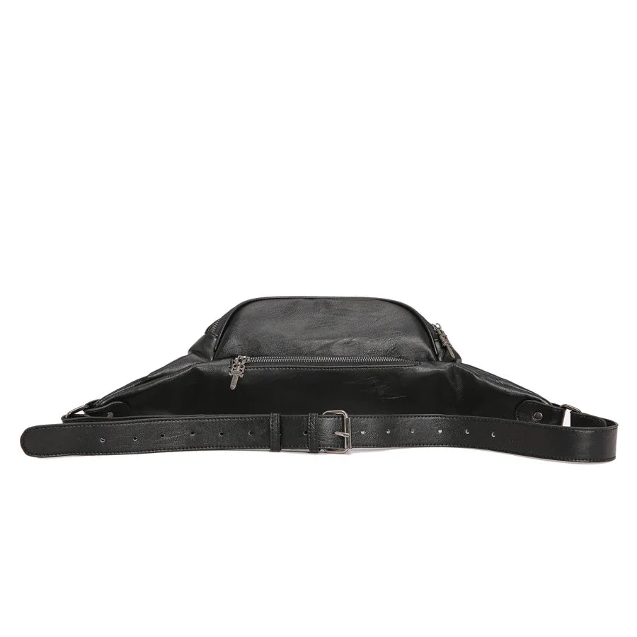 This men's chest bag is made of high-quality leather, perfect for carrying your essentials in style. Ideal for business or casual use, it features multiple compartments for organization.