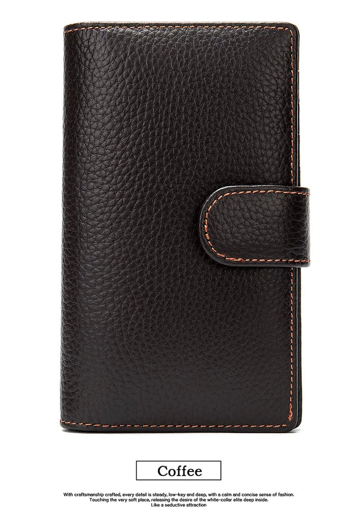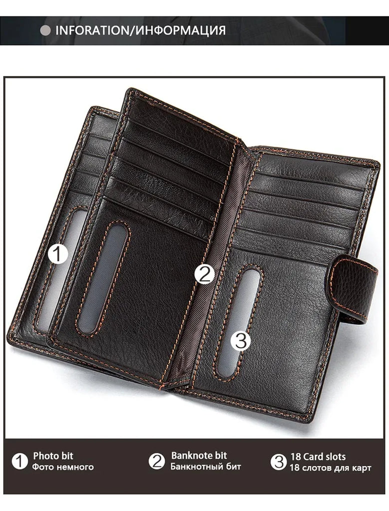 Men's Long Wallet Cow Leather Trifold Clutch Business Purse