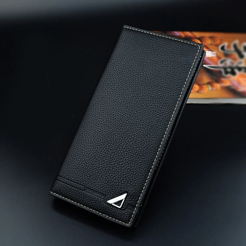 Men's Long Wallet Lychee Pattern Soft PU Leather Purse