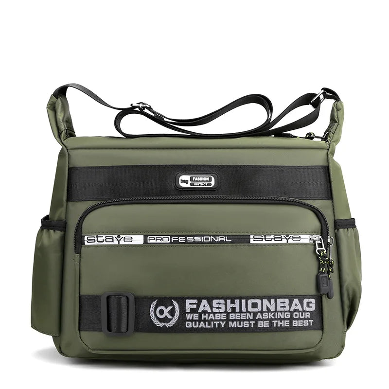 This men's messenger bag is a versatile and stylish choice for business travel, made of durable nylon material. It offers a large capacity and is lightweight for comfortable carrying.
