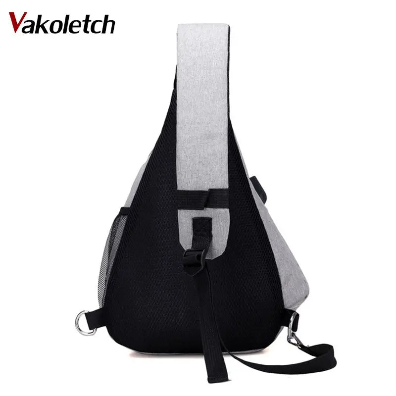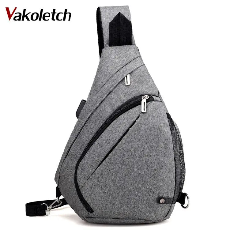 Men's Nylon Sling Bag Multifunctional Shoulder Crossbody USB Charge Chest Bags