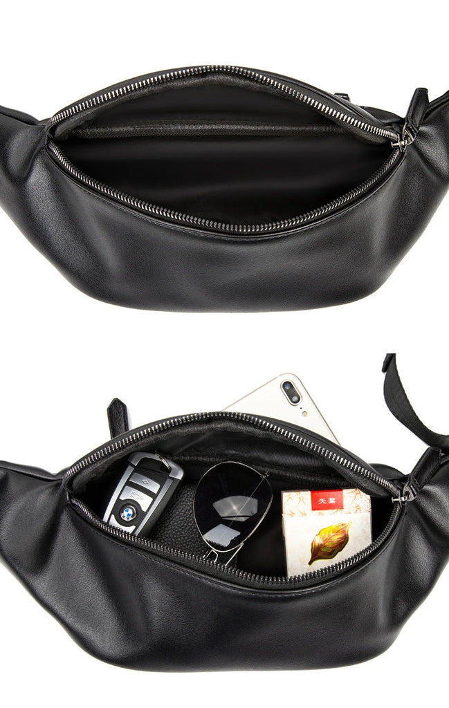 This men's chest bag is made of high-quality PU leather and features a crossbody design. It is a small sports bag ideal for daily use. The soft leather material adds a touch of luxury to this waist bag for men.