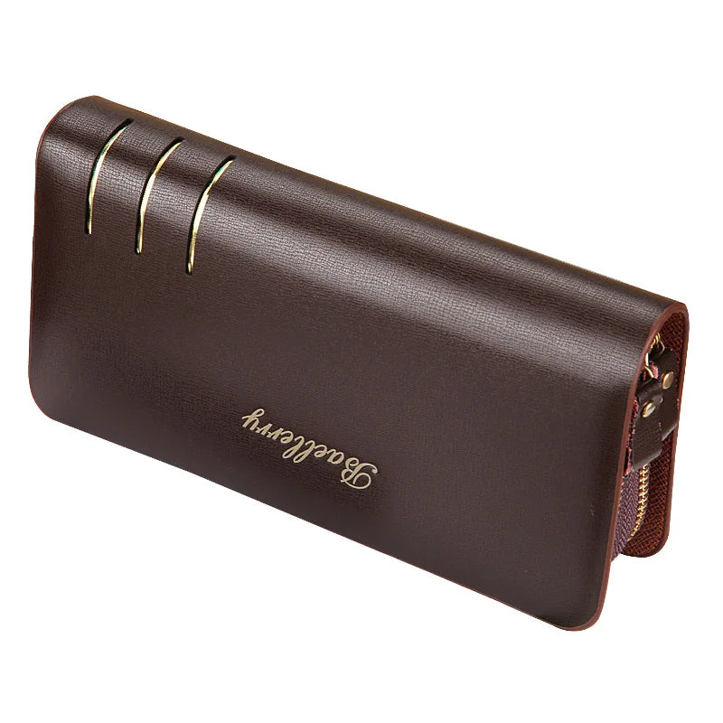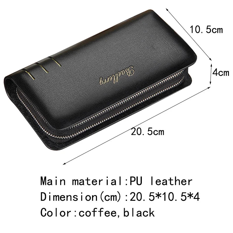 Stay organized with this stylish and versatile men's PU leather long wallet featuring double zipper design. It's perfect for carrying cards, cash, and more.