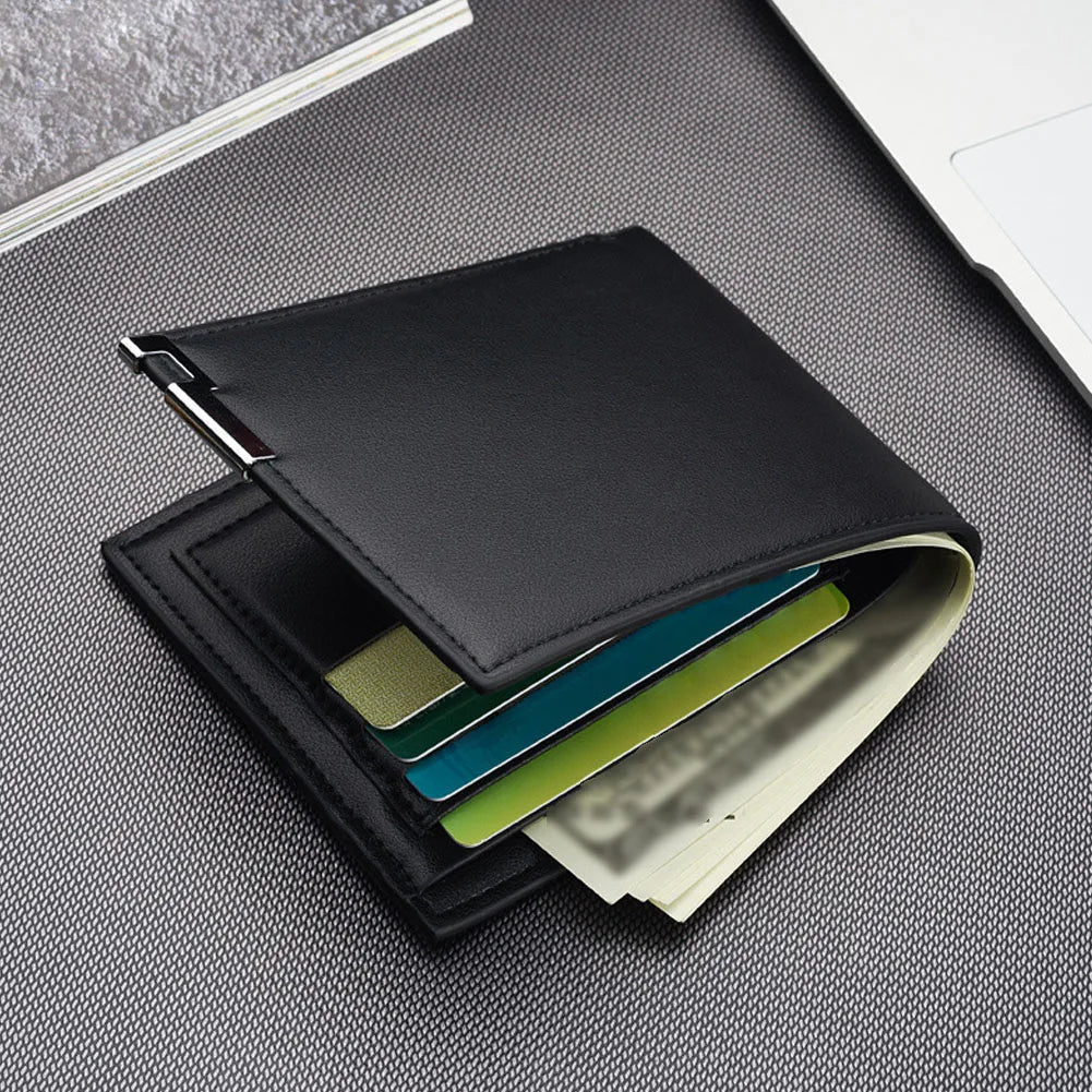 This two-fold wallet is perfect for business and casual use, crafted from high-quality leather. It features multiple card slots to keep your essentials organized.