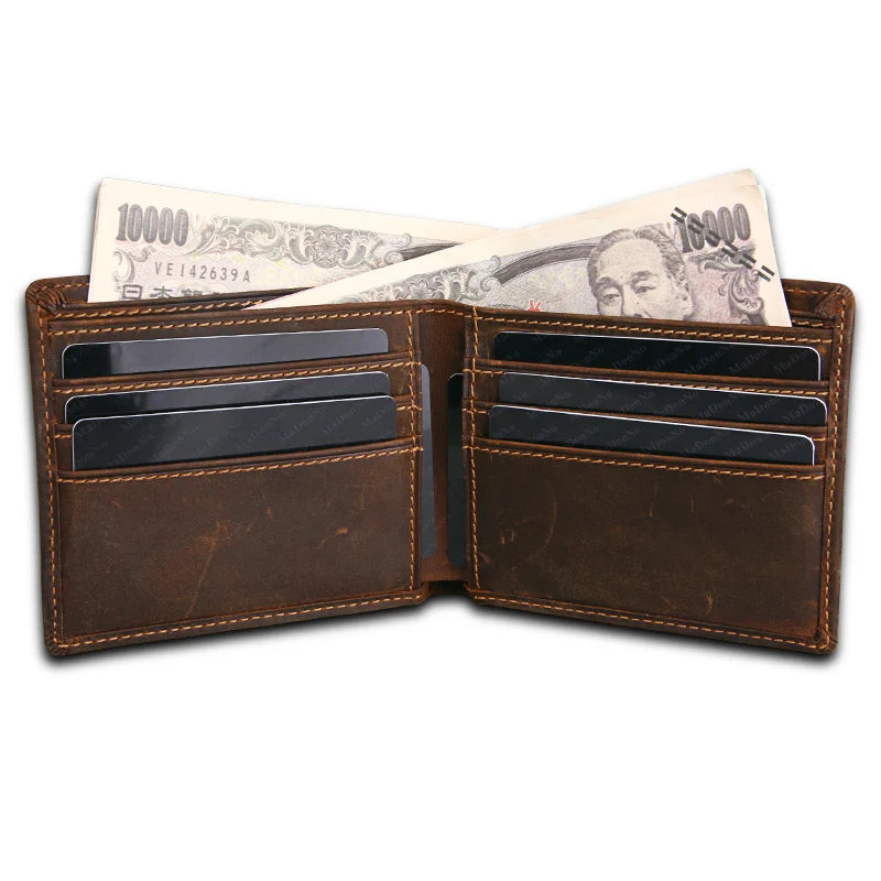 Men's RFID Crazy Horse Leather Wallet Short Purse Casual Carteira Masculina