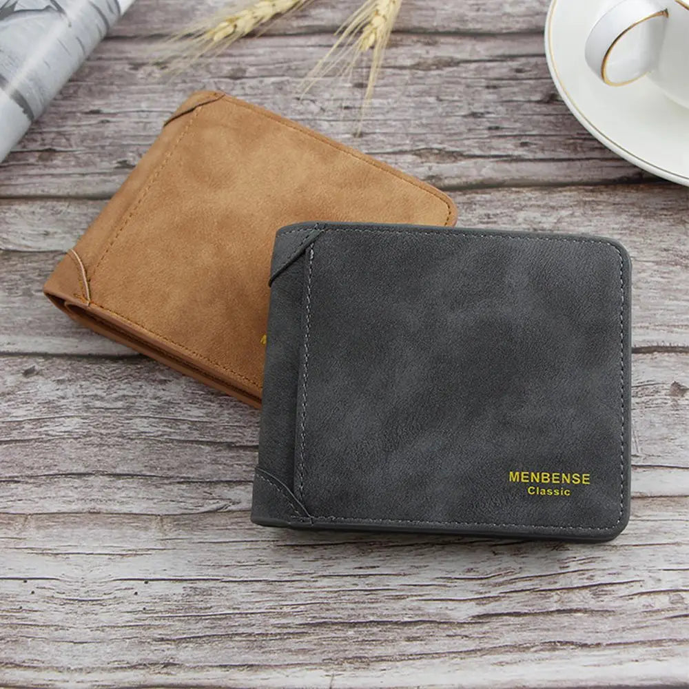 This men's wallet is crafted from frosted leather with a retro design. It features a two-fold structure for a slim profile and offers ample card slots. Ideal for youth, this multi-card wallet is a practical and stylish accessory for men.