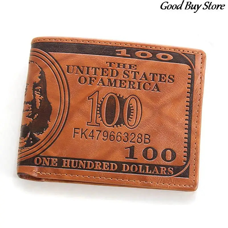 Men's Short Wallet Money Clip Foldable Leather Wallets Brown