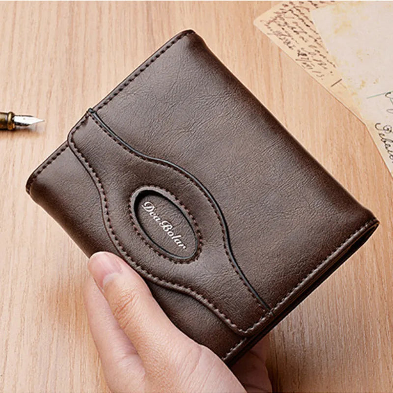 Stay organized in style with this retro men's short wallet made of waterproof PU material. It features multiple card slots for convenient storage.