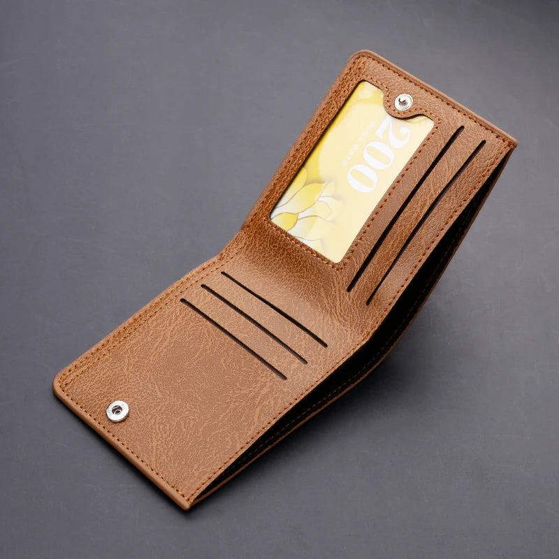 This men's short wallet is designed for both style and functionality. It's the perfect accessory to keep your cards and cash organized in a compact size.