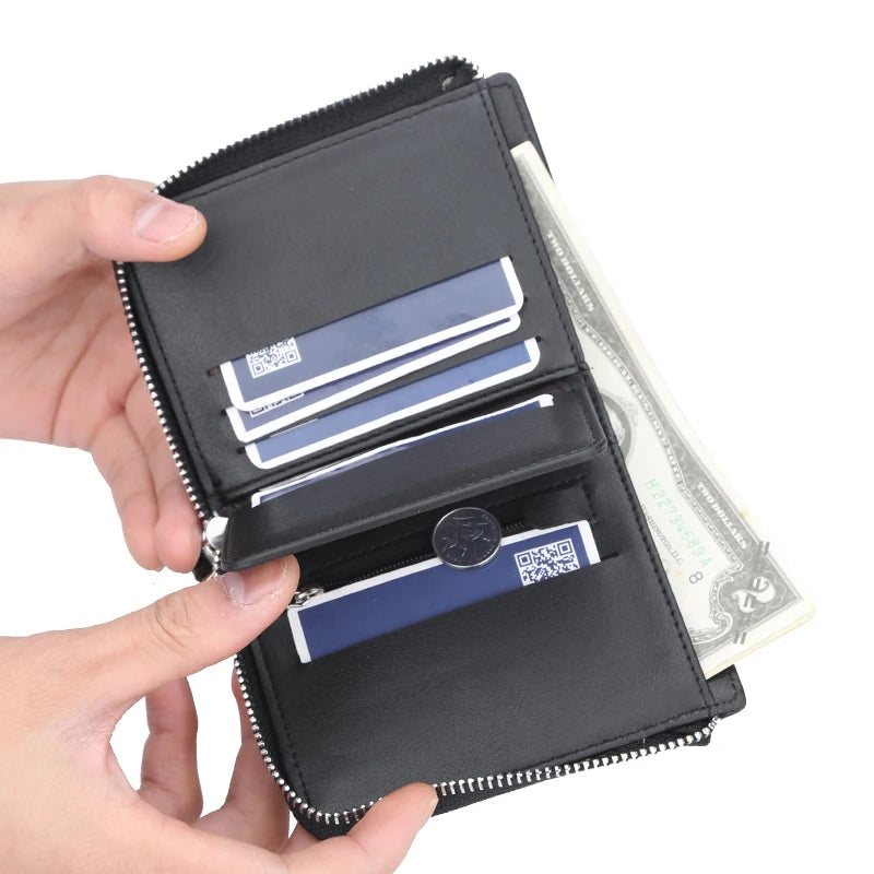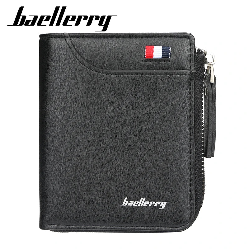 This men's short casual wallet is made of high-quality PU leather with a zipper closure for secure storage of your coins. It is perfect for everyday use.
