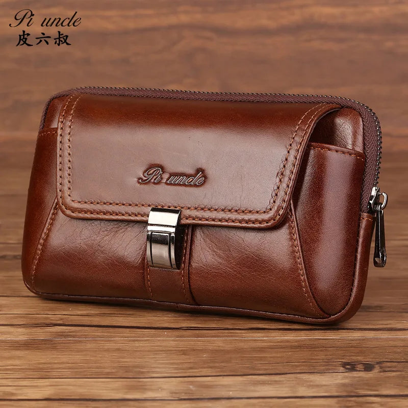This men's small leather fanny pack is made of high-quality cowhide and features a multi-functional design. Perfect for carrying your essentials in style.