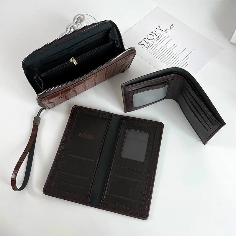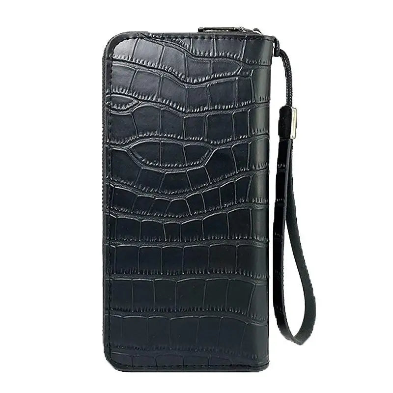 Men's Stone Pattern Long Wallet Embossed Soft Business Wristband