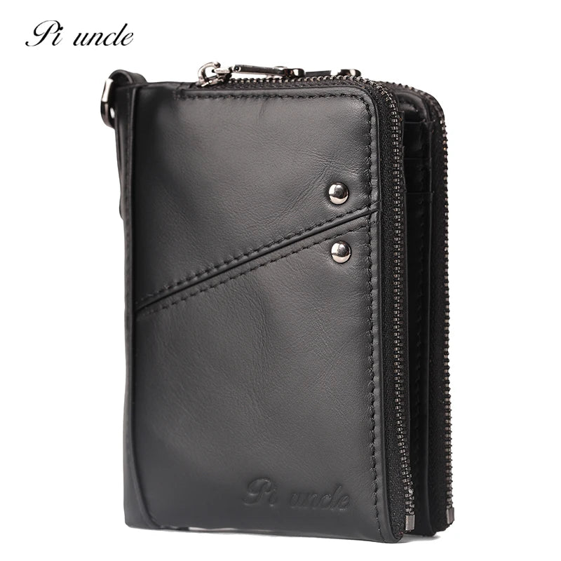 Men's Thin Leather Wallet High Oil Wax Cowhide Short Zipper Cards Purse