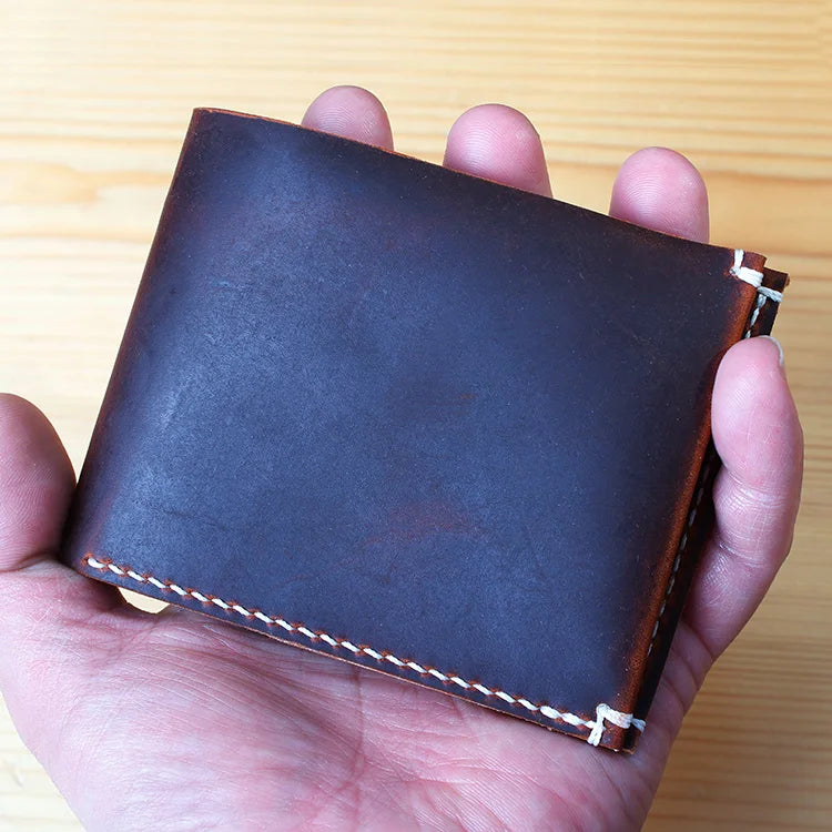 Minimalist Leather Wallet Men Hand Stitch Slim Small Wallet for Men Carteras