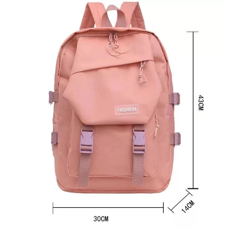 This nylon backpack is perfect for junior high school students. It has a large capacity and a preppy style design, making it ideal for campus use. The solid color adds a fashionable touch to your daily essentials.