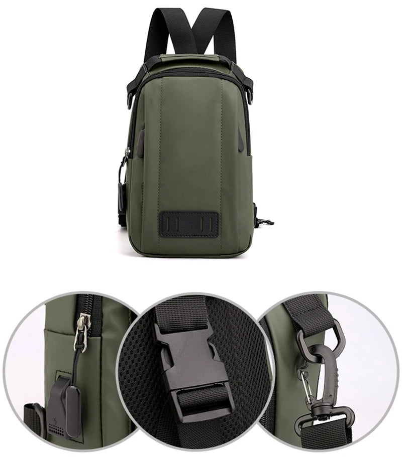 Nylon Men Backpack Rucksack Chest Bags with USB Charging