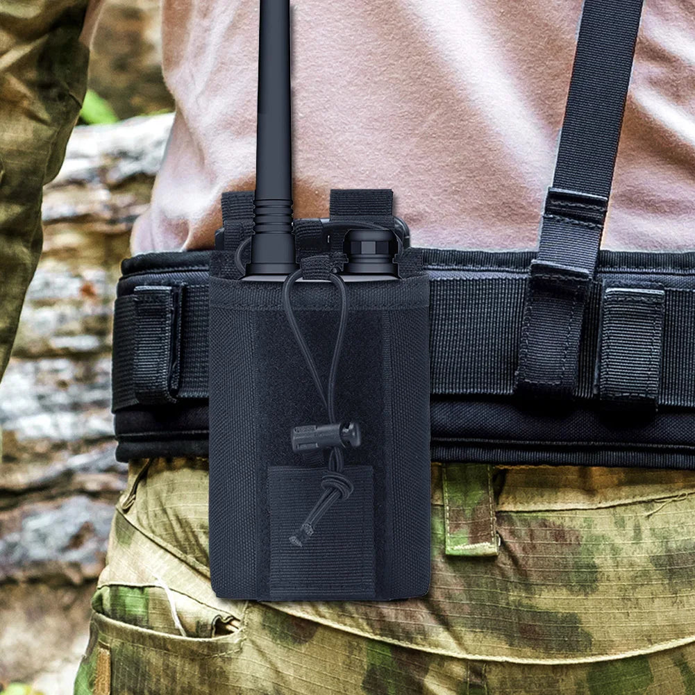 This 1000D pouch is designed for outdoor activities and airsoft equipment. It can hold a walkie talkie securely.