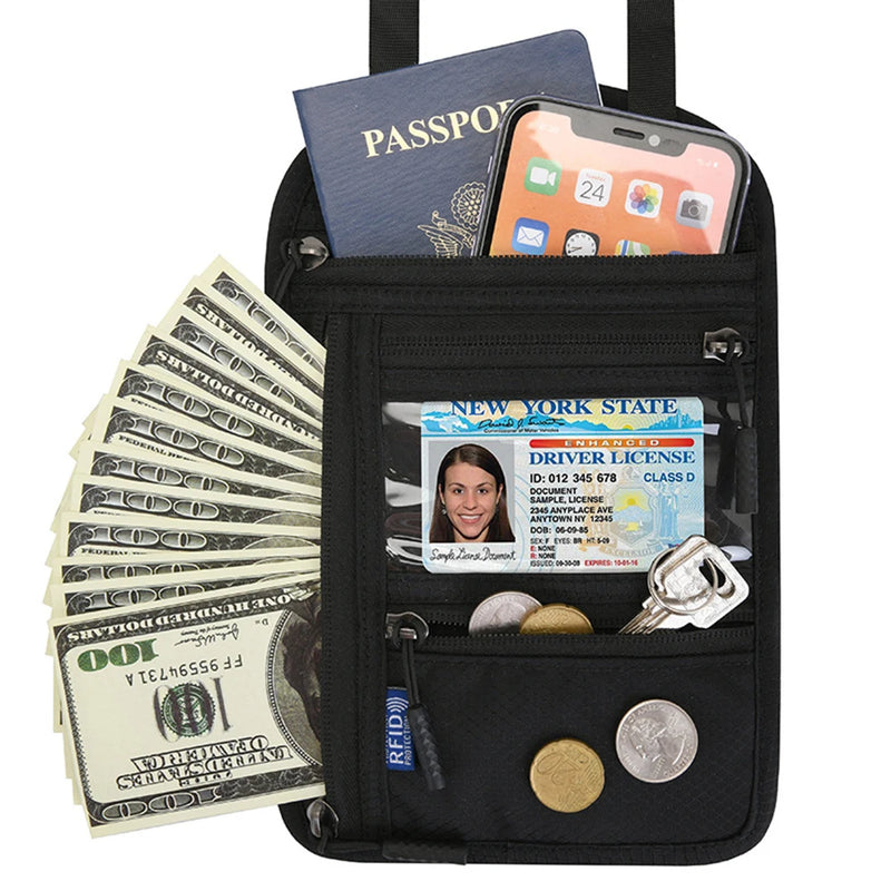 Keep your documents safe while traveling with this multifunctional passport bag. It can hold your passport, tickets, and other important documents. The hanging neck design provides convenient access.