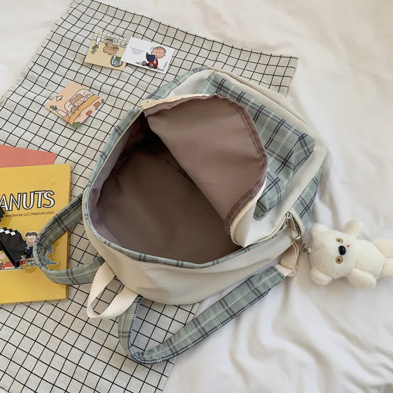 Plaid Backpack for High School Students Fresh Style Large Capacity Schoolbag