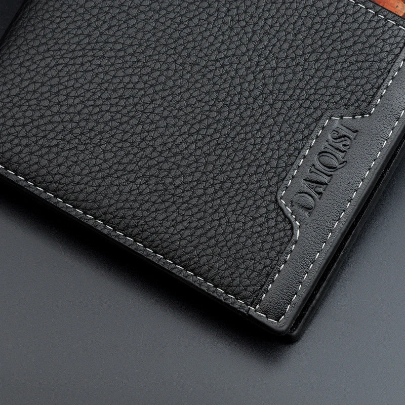 Stay organized with this retro leather men's short wallet, featuring horizontal design and multiple card slots.