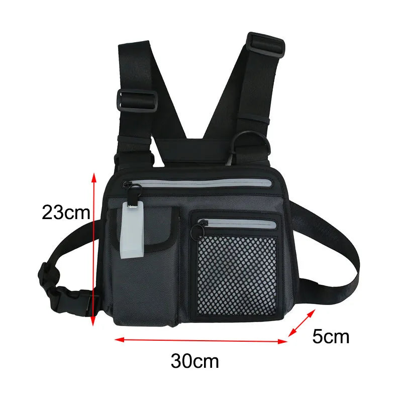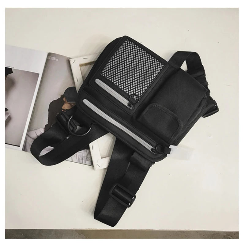 This reflective chest bag is perfect for youth hip hop style. It is waterproof, lightweight, and ideal for tooling or tactical use.