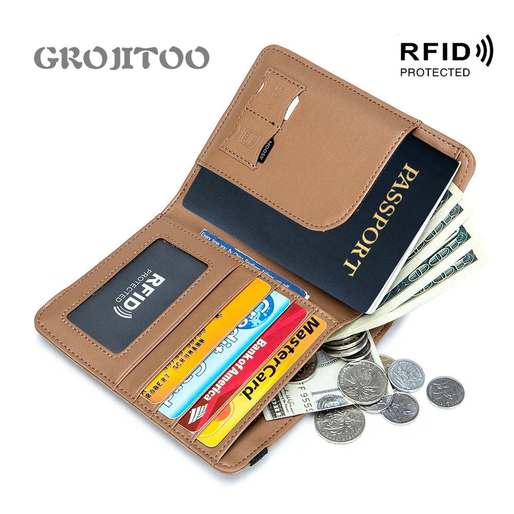 Stay organized and secure with this multi-functional leather passport holder wallet that features RFID protection. The elastic belt ensures a perfect fit and easy access.