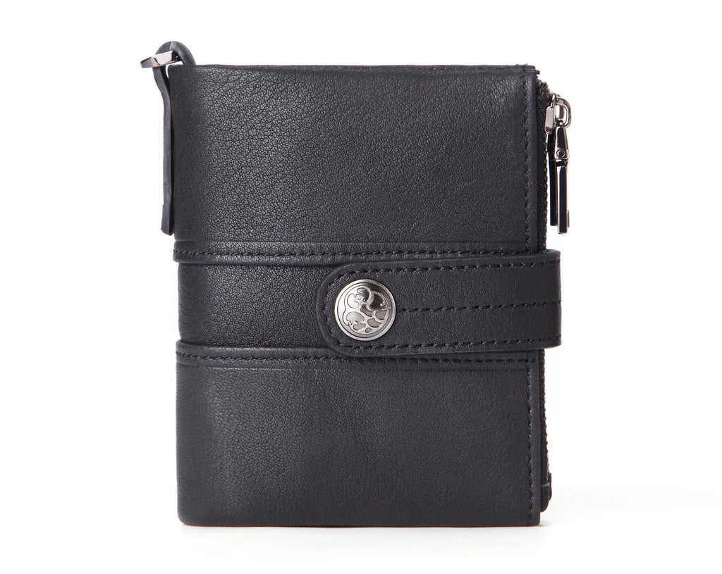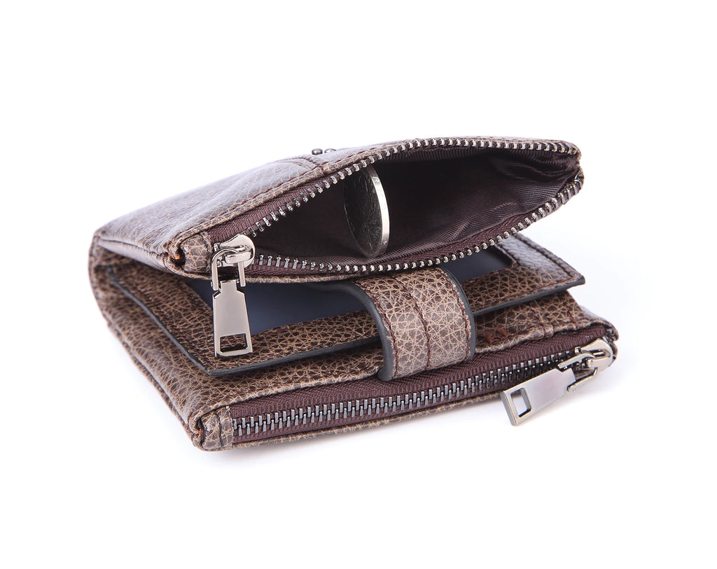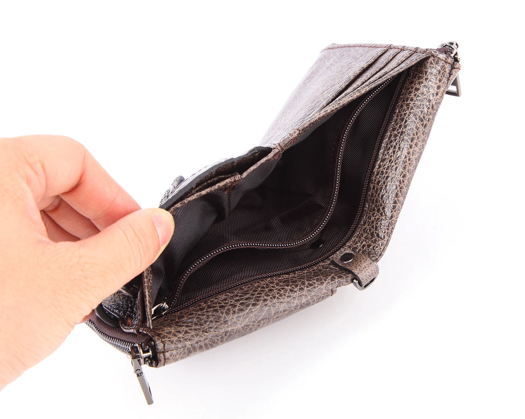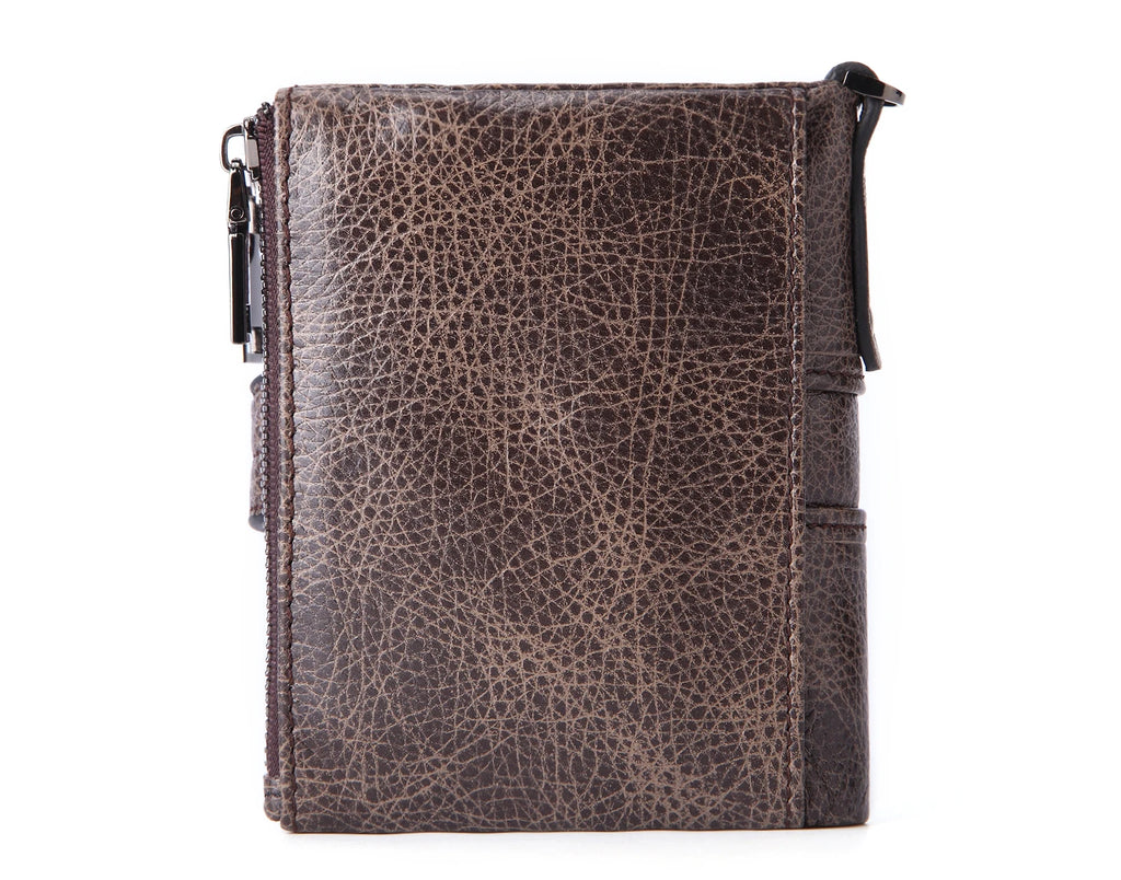 This RFID men's wallet is made of high-quality cow leather, featuring a retro design with a secure buckle and zipper closure. It is a casual and vintage style wallet that can hold your money and cards.