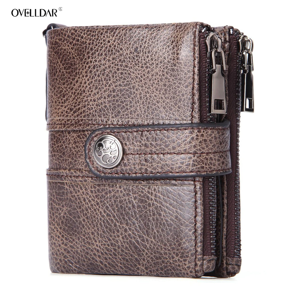 RFID Men wallet Leather Man Purse buckle zipper Retro Cow leather male wallet