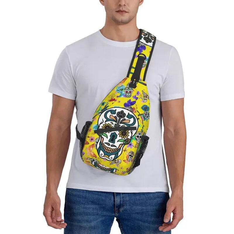 Carry your essentials in style with this unique sugar skulls sling crossbody backpack. Perfect for camping, biking, or everyday use.