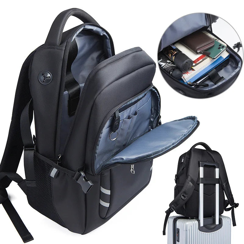 This multifunctional backpack is perfect for everyday use, outdoor adventures, and travel. It features a USB charging port and a headphone jack for added convenience.