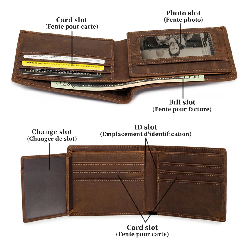 Upgrade your style with this retro-inspired men's leather wallet featuring a convenient zipper pocket.
