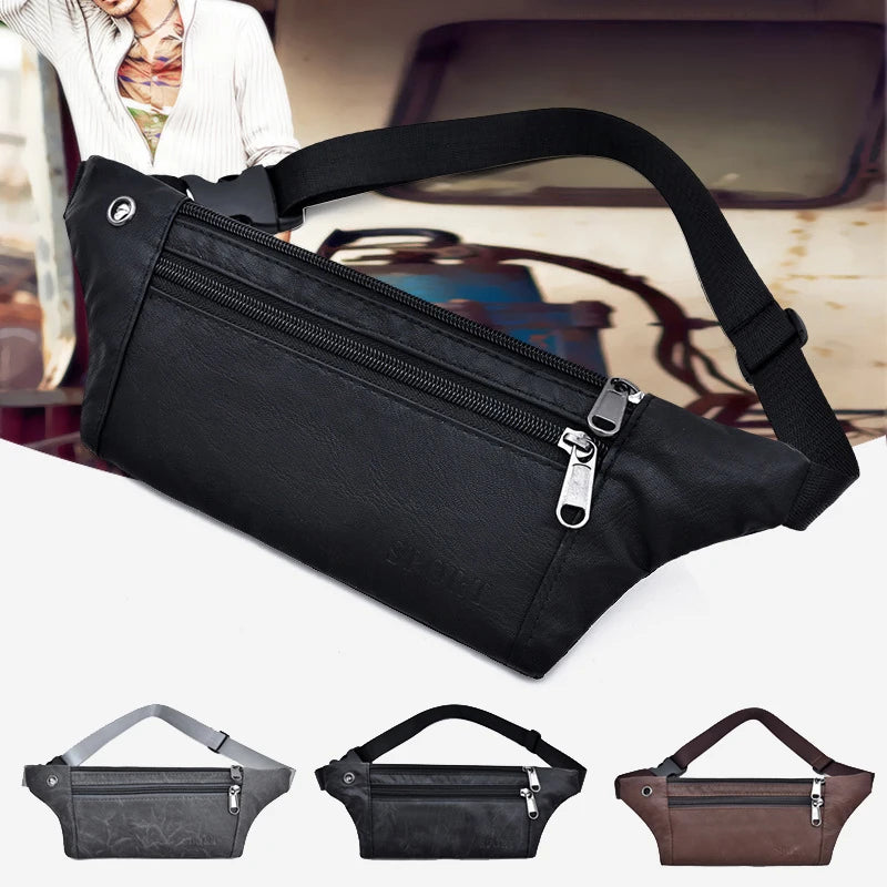 Stay organized on-the-go with this casual waist bag made of durable PU leather. Perfect for carrying money, phone, and other essentials.