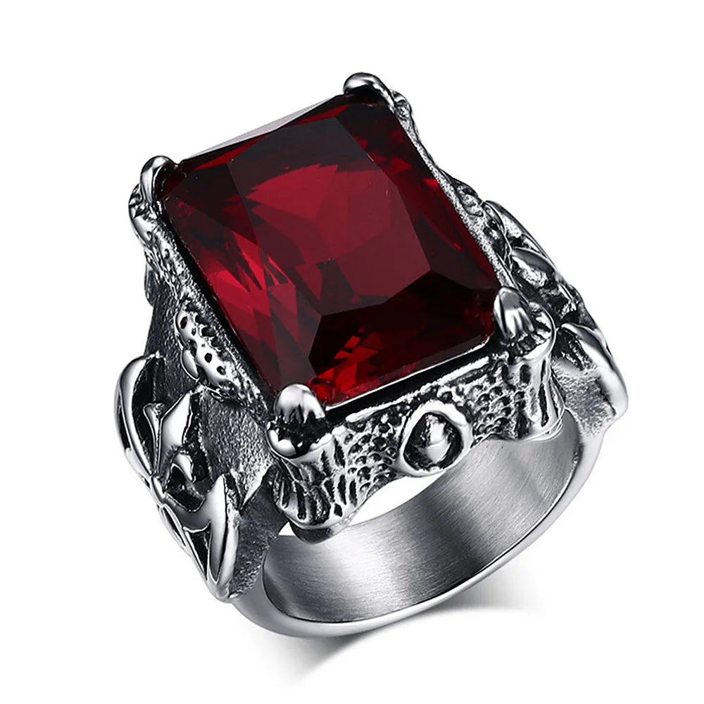 Vintage Red Zircon Gothic Men's Ring Titanium Stainless Steel Jewelry