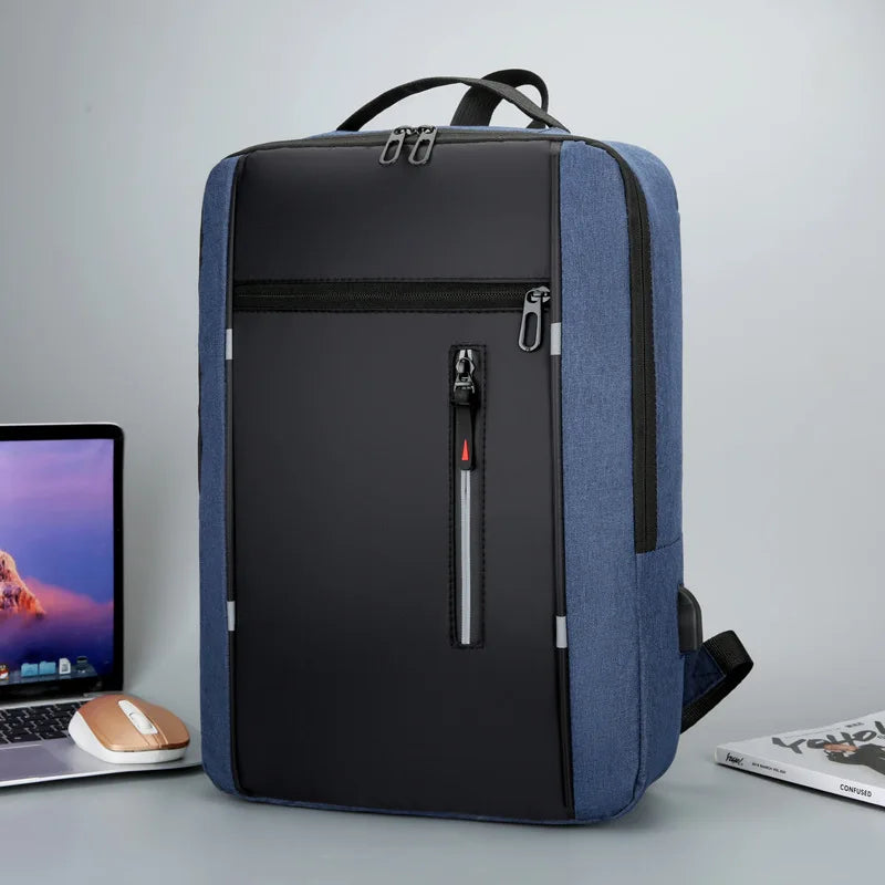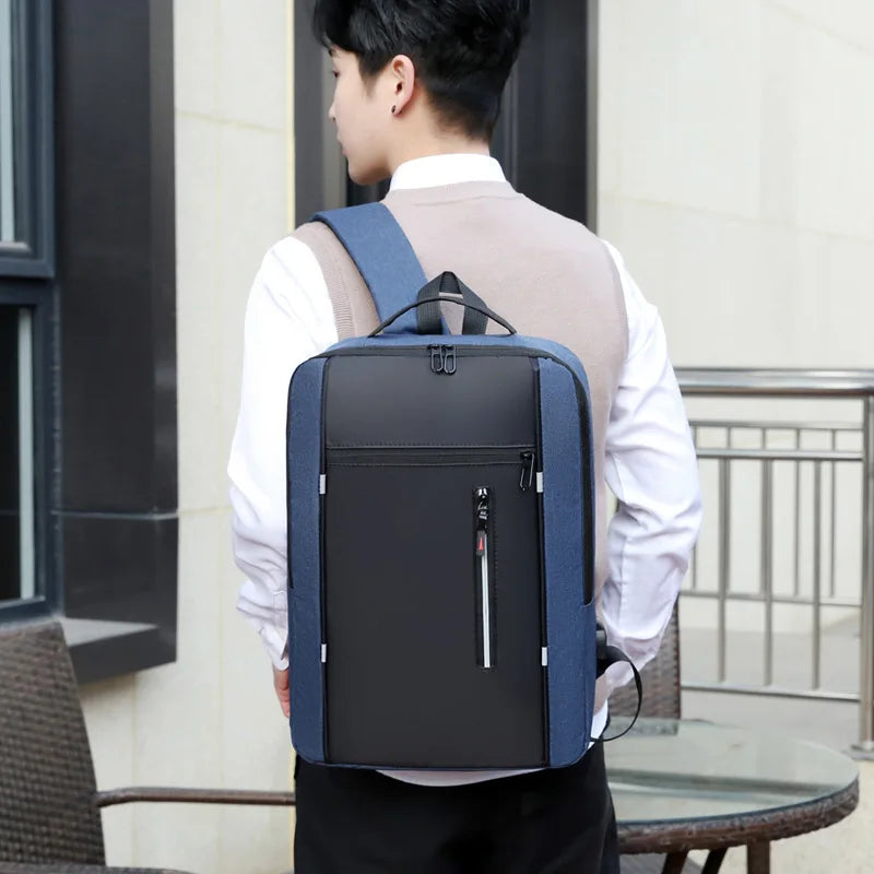 This sleek and waterproof business backpack is suitable for men on-the-go. It features a USB charging port and multiple compartments for laptops and school essentials.