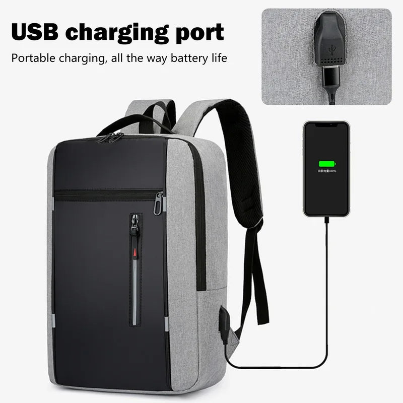 Description:This sleek and waterproof business backpack is suitable for men on-the-go. It features a USB charging port and multiple compartments for laptops and school essentials.Features: Waterproof construction for added protection USB charging port for easy device charging Multiple pockets and compartments for organization Ideal for school, business, and daily use...
