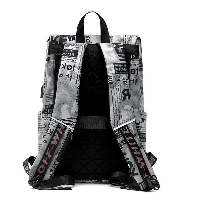 16 Inch Laptop Backpack, Men's Commuter Bag, Punk Print Schoolbag