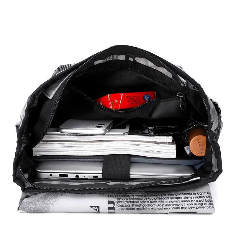 This 16-inch laptop backpack is made of waterproof Oxford material, perfect for teenagers. It features a unique letter punk print design, ideal for school or daily commute.