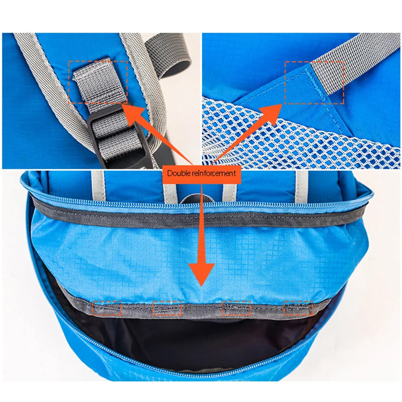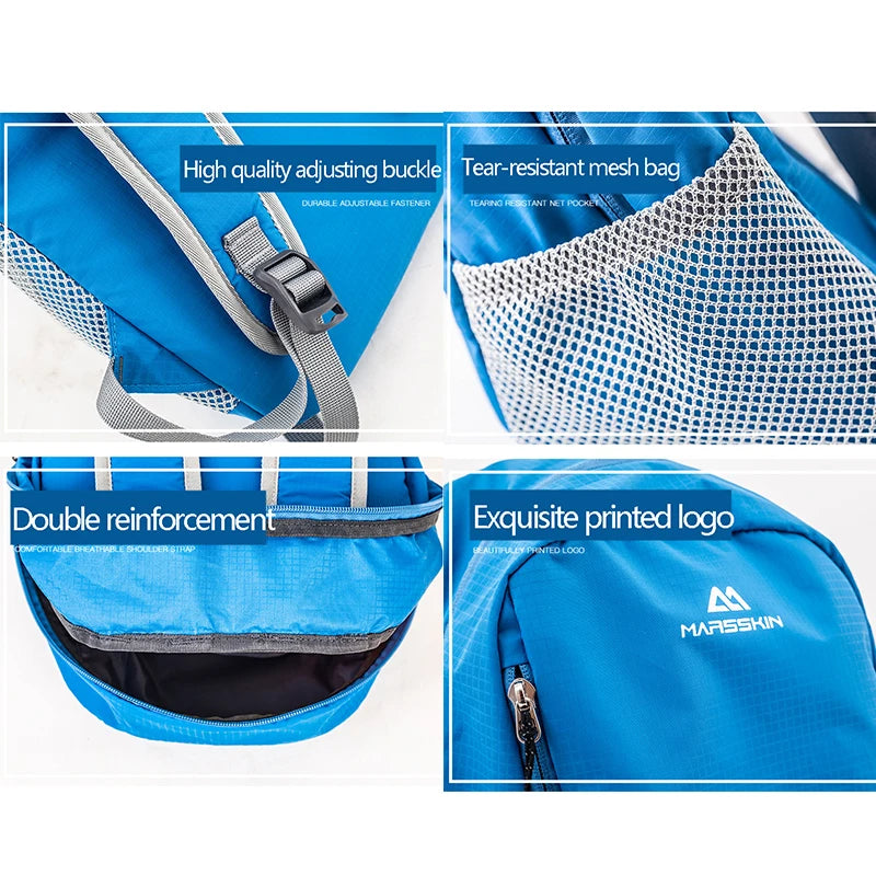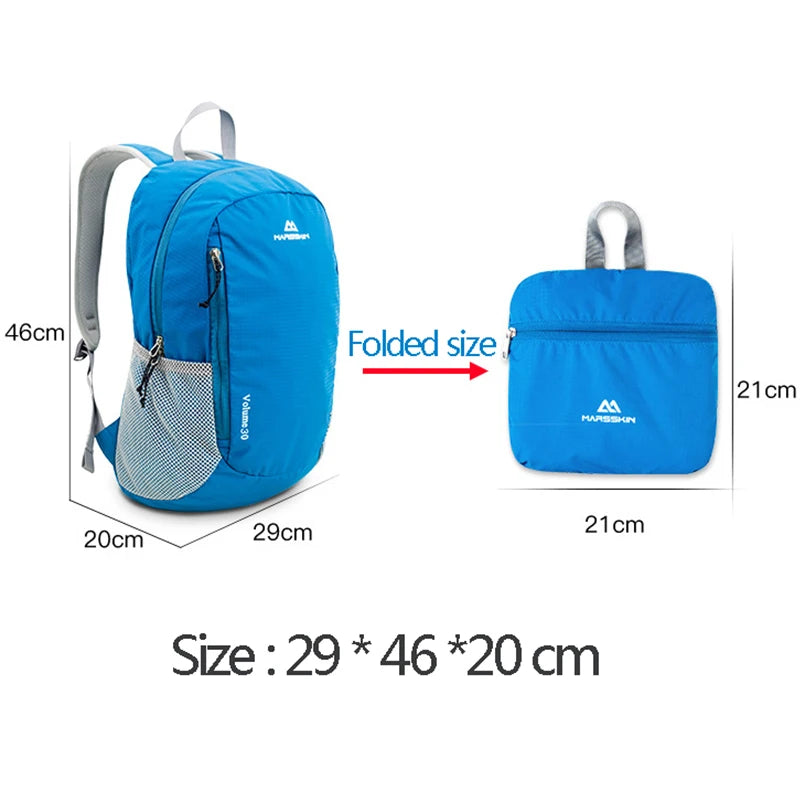 This 30L backpack is perfect for outdoor activities such as climbing, camping, hiking, and traveling. It is waterproof and foldable for easy storage.