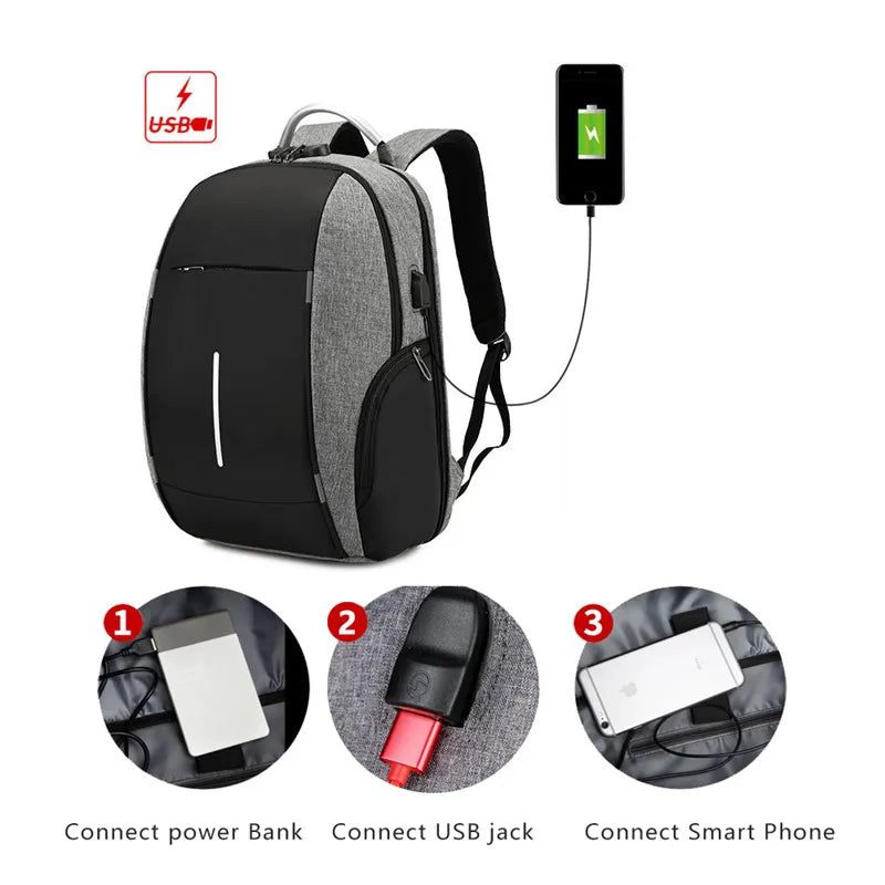 Stay secure and organized with this anti-theft backpack designed for men. It features a large capacity to hold your laptop and essentials, perfect for travel and school.