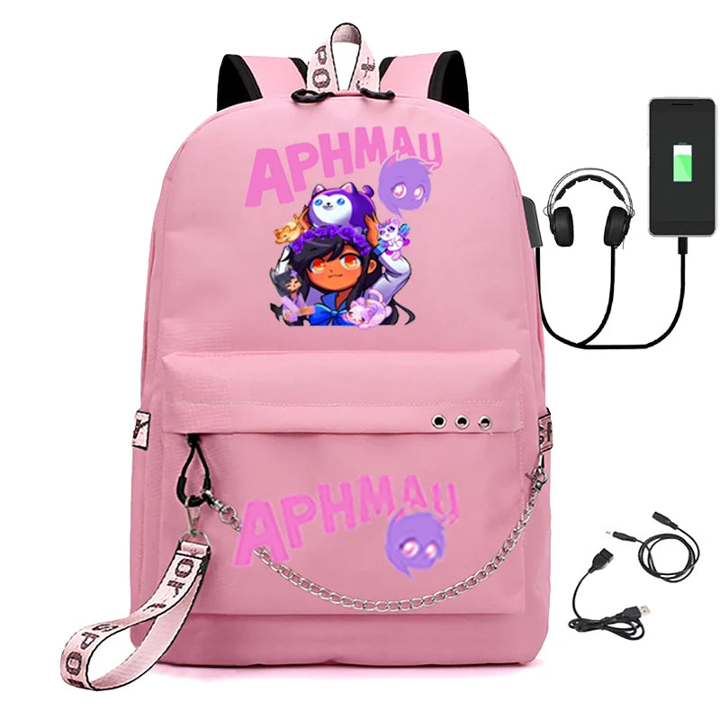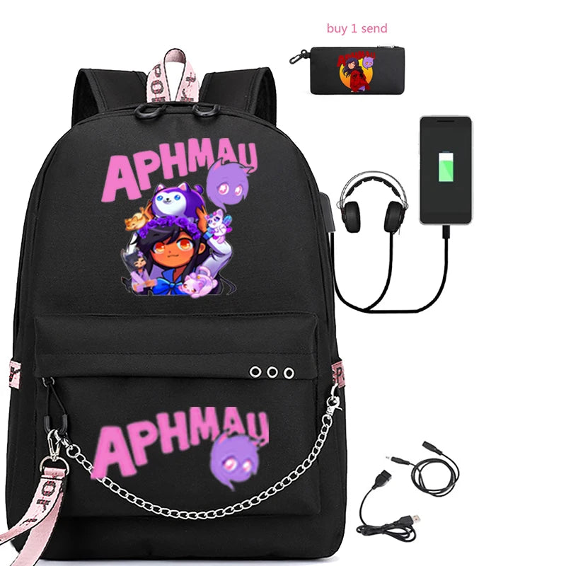 Aphmau Laptop USB Bag Canvas Shoulder Backpack with Pencil Case